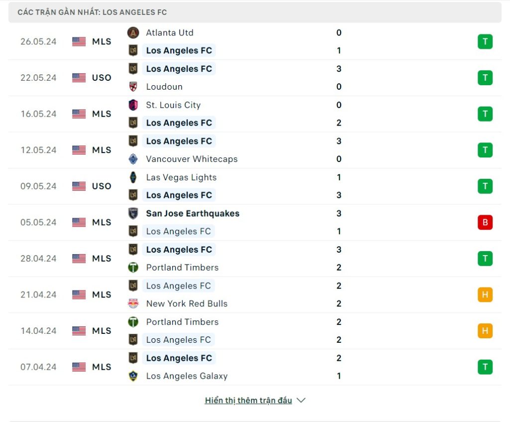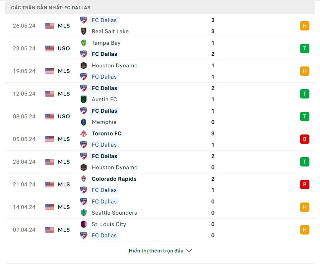 Phong độ đội bóng Los Angeles FC vs FC Dallas