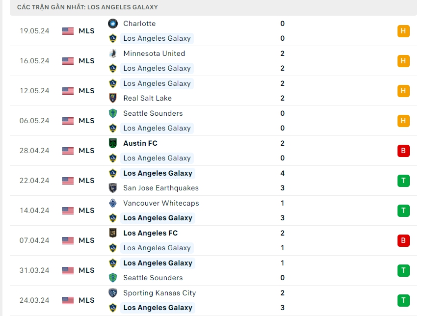 Phong độ đội bóng Los Angeles Galaxy vs FC Dallas