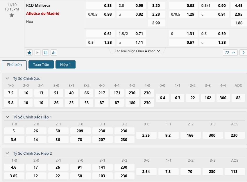 Soi kèo 1X2 7M Mallorca vs Atletico Madrid