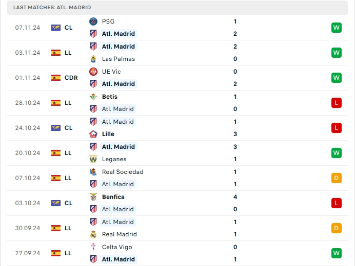 -Phong độ Atletico Madrid