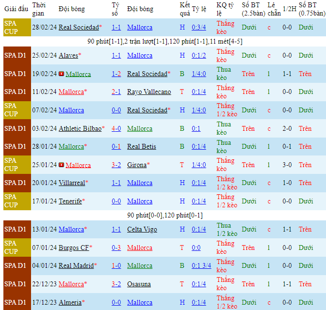 Trong khi đó với Mallorca, đội bóng này vừa trải qua trận hòa 1-1 trước Alaves ở vòng đấu vừa rồi. Có thể thấy phong độ của chủ nhà ở thời gian qua cũng là rất bấp bênh. Trải qua 7 vòng đấu gần nhất nếu chỉ tính riêng ở đấu trường La Liga thì Mallorca chỉ có thể tìm thấy cho mình đúng 1 chiến thắng trong số đó. Đây là sự khiêm tốn đáng kể và nó khiến cho Mallorca vẫn đang chênh vênh ở khu vực nửa dưới BXH cùng 24 điểm sở hữu lúc này. Có lẽ màn tiếp đón Girona sắp tới vẫn sẽ để lại cho họ những mối lo lớn. Màn so tài sẽ là đôi chút sự lấn lướt của các vị khách, tuy nhiên khả năng nổ tài sẽ là không quá cao.