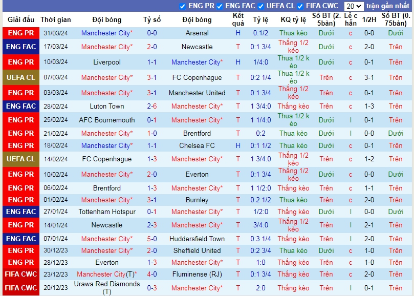 - Chọn Manchester City HT