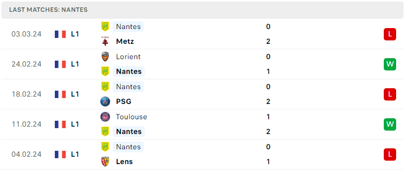Phong độ của Nantes