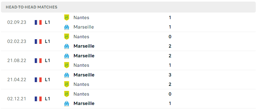 Thành tích đối đầu của Marseille vs Nantes