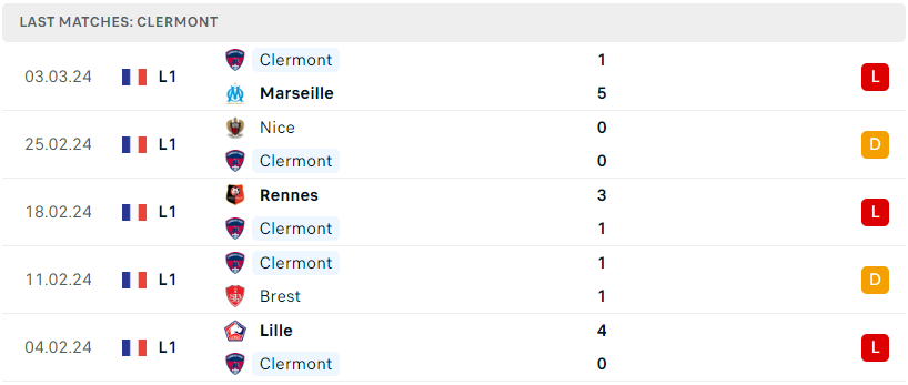 Phía bên kia, không khá hơn là mấy khi Clermont vẫn đang liên tục chìm sâu trong khủng hoảng ở mùa giải năm nay và thất bại múi mặt 1-5 trước Marseille đã là trận không thắng thứ 21 sau 24 lần ra sân của tập thể này. Một lối chơi quá thiếu chắc chắn và mơ hồ đang biến Clermont trở thành kho điểm tại Ligue 1. Hiện đoàn quân Gastien cách vị trí an toàn lên đến 7 điểm và nếu cứ tiếp tục thi đấu với sự yếu kém như hiện tại thì tin chắc rằng ngày trở lại Ligue 2 cũng chỉ còn là yếu tố thời gian.