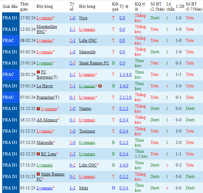 -Phong độ Lyon