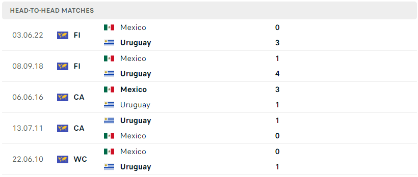 Trên thực tế, cả Mexico lẫn Uruguay đều được đánh giá là những tập thể có khả năng chơi tấn công, bằng chứng trong cả 3 cuộc chạm trán gần nhất giữa đôi bên đều xuất hiện ít nhất từ 3 bàn thắng trở lên. Chính vì lẽ đó, khả năng tiếp tục nổ tài trong màn tái đấu sắp tới sẽ là rất cao.