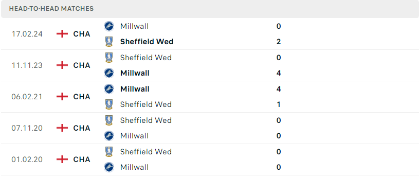 Thành tích đối đầu của Millwall vs Sheffield Wed