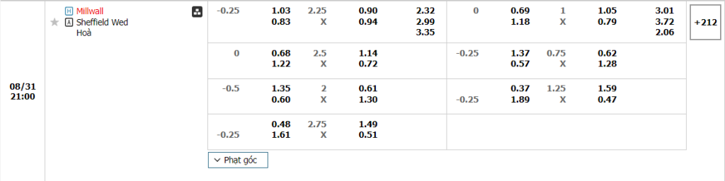 Kèo Châu Âu vẫn đang là sự nhỉnh hơn dành cho đội chủ nhà, khi mức ăn của họ là 2.32 và con số này của “The Olws” là 2.99. Điều này cho thấy Millwall vẫn được đánh giá cao hơn, ít nhất là trên lý thuyết. Tuy nhiên, với phong độ bất ổn của đội chủ nhà, trận đấu này hứa hẹn sẽ rất khó đoán, và Sheffield Wednesday hoàn toàn có thể tạo nên bất ngờ bằng một điểm ra về.