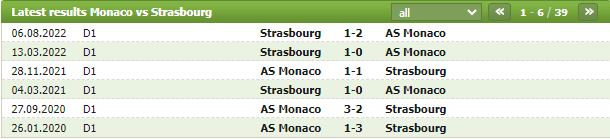 Lịch sử thi đấu của Monaco vs Strasbourg