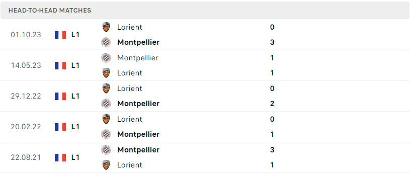 Bên cạnh trận thắng 3 sao ở lượt đi, Montpellier cũng đã thắng đến 4/5 lần đối đầu gần nhất. Đáng nói hơn, trận thắng gần nhất mà Lorient có được trước đối thủ cũng đã hơn 9 năm về trước. Một mùa giải dù có đôi chút khó khăn nhưng với bản lĩnh và năng lực vốn có thì tin chắc rằng Montpellier vẫn biết cách giữ lại 3 điểm trước đối thủ yếu kém này.