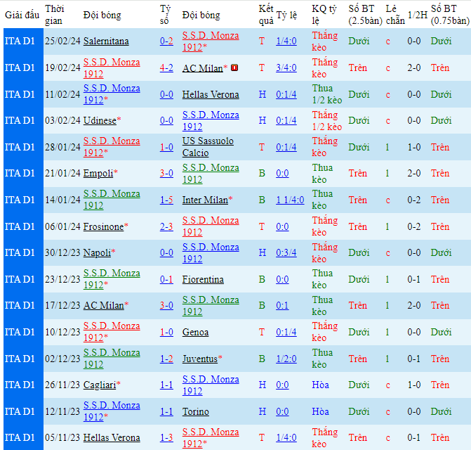 Trong khi đó với Monza, đội chủ nhà cũng sở hữu khoảng thời gian thi đấy lọt xác hoàn toàn với khá nhiều những sự cải thiện. Chiến thắng 2-0 trước Salernitana ở vòng đấu vừa rồi vừa đánh dấu lượt đấu thứ 5 liên tiếp mà cái tên này không phải chịu lấy cảnh trắng tay. Rõ ràng đó là một sự khích lệ không hề nhỏ dành cho Monza nhất là khi với vị trí thứ 11 cùng 36 điểm đang có hiện tại, họ hoàn toàn trở lại khu vực nửa trên một cách nhanh chóng. Chắc chắn Monza vẫn là sự đe dọa không hề nhỏ dành cho AS Roma ở vòng đấu tiếp theo. Màn so tài sẽ là đôi chút sự lấn lướt đến từ các vị khách, khả năng nổ tài vẫn sẽ để lại những bỏ ngõ.