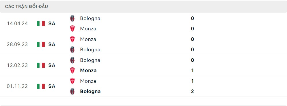 Những màn đụng độ giữa Monza và Bologna trong quá khứ luôn là những trận đấu nặng toan tính. Cụ thể 3/4 lần gặp nhau trước đây đều trong khuôn khổ Serie A chứng kiến không quá 2 bàn thắng được ghi. Với tình thế hiện nay của hai đội, kịch bản này rất dễ được tái hiện.
