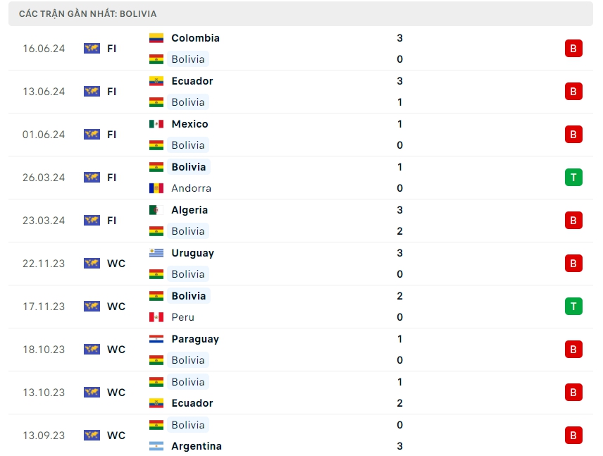 -Phong độ Bolivia