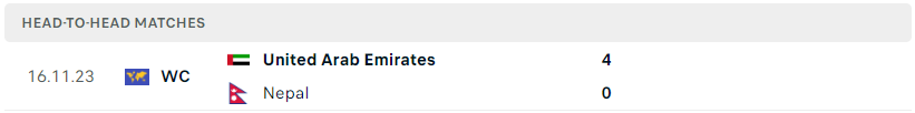 Thành tích đối đầu của Nepal vs UAE