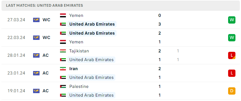 Phong độ của UAE