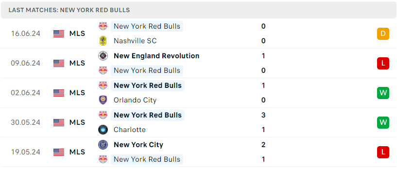 Phong độ đội bóng New York Red Bulls vs Toronto