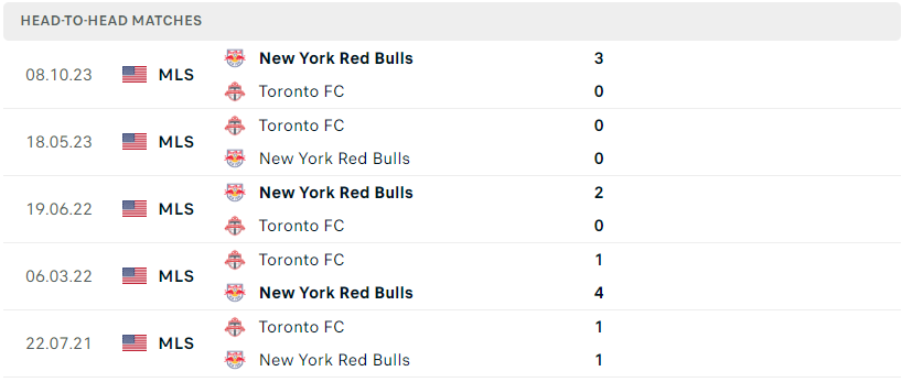 Thành tích đối đầu của New York Red Bulls vs Toronto