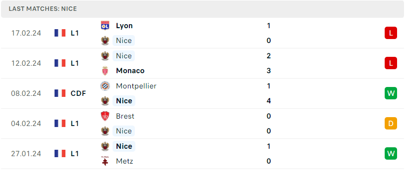 Sau cùng chuỗi trận thăng hoa trong năm mới của Nice cũng vừa bị chặn lại bởi 2 thất bại liên tiếp trước Lyon và Monaco, một tín hiệu không mấy tích cực khi bởi lẽ đoàn quân Francesco Farioli đang được đánh giá là một trong những tập thể có tỷ lệ về nhì cao nhất tại Ligue 1 mùa này. Một thời điểm khó khăn và đang phải hứng chịu nhiều sức ép, Đại Bàng cần phải nhanh chóng vực dậy tinh thần và tìm lại mạch thắng nếu không muốn vị trí thứ 2 chính thức thuộc quyền sở hữu của Brest.