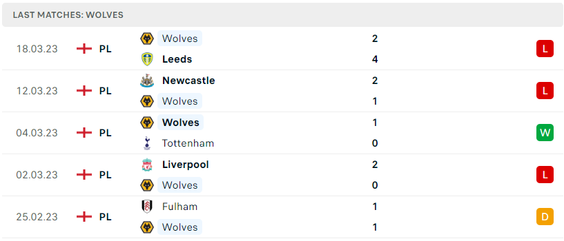 Phong độ của Wolves
