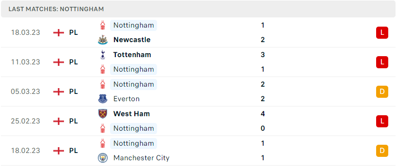 Phong độ đội bóng Nottingham vs Wolves