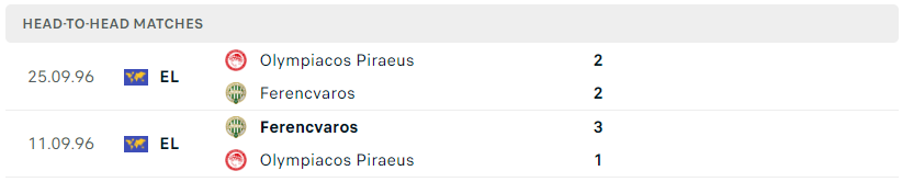 Thành tích đối đầu của Olympiacos Piraeus vs Ferencvaros