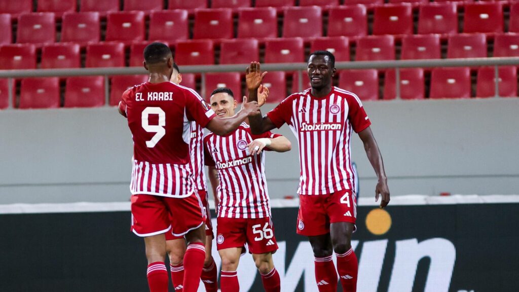 Olympiacos Piraeus: Paschalakis; Rodinei, Biancone, Retsos, Ortega; Fortounis, Iborra, Camara; Biel, El Kaabi, Masouras.