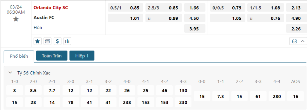Sự ưu thế vẫn đang thuộc về đội chủ nhà ở kèo Châu Âu, khi mức ăn của họ là 1.66 và con số này của các vị khách là 4.50. Về cơ bản, thực lực của Austin FC không thể nào sánh bằng Orlando, bất chấp việc phong độ của The Lions đang chạm đáy. Thế nhưng, với những lợi thế quá lớn thì họ vẫn sẽ biết cách vượt qua một Austin FC vẫn không nếm mùi chiến thắng kể từ tháng 10 năm ngoái.