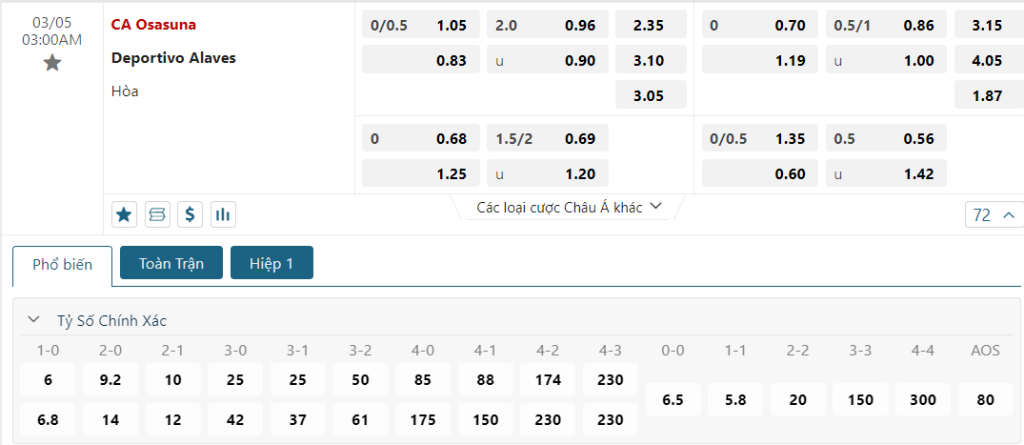Soi kèo Châu Á, kèo chấp Osasuna vs Alaves