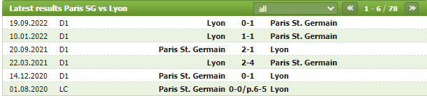 Lịch sử thi đấu của Paris Saint Germain vs Lyon