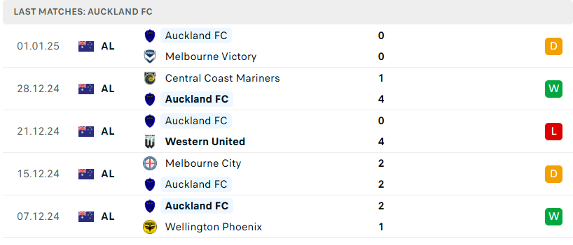 Phong độ đội bóng Perth Glory vs Auckland FC