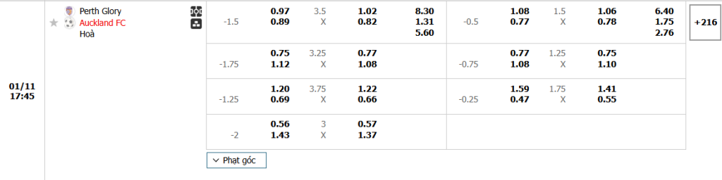 Sự áp đảo tiếp tục được Auckland FC thể hiện ở kèo Châu Âu, với mức ăn của họ chỉ là 1.31, trong khi con số này của đội chủ nhà Perth Glory lên đến 8.30. Điều này cho thấy Auckland đang được đánh giá rất cao nhờ vào đẳng cấp, phong độ ổn định. Ngược lại, sự kém cỏi kéo dài của Perth Glory chỉ càng củng cố thêm niềm tin vào một chiến thắng dành cho Auckland. Lợi thế sân nhà là chưa đủ để Perth Glory tránh 1 thất bại.