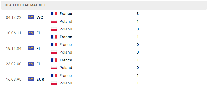 Thành tích đối đầu của Pháp vs Ba Lan