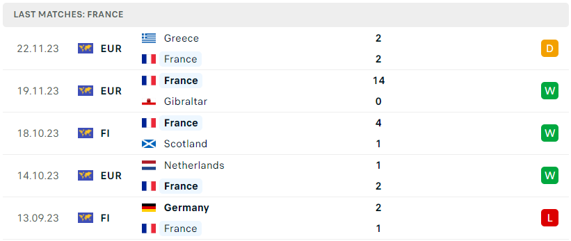 Phong độ đội bóng Pháp vs Đức