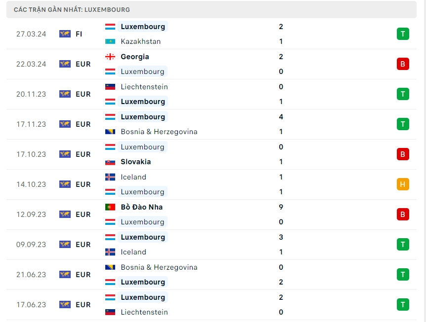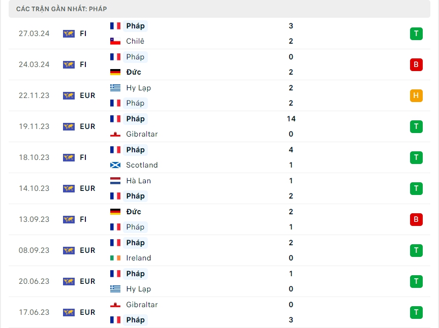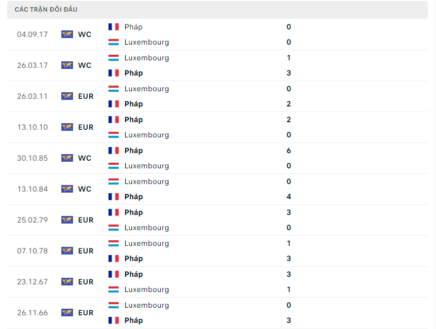 Lịch sử thi đấu của Pháp vs Luxembourg