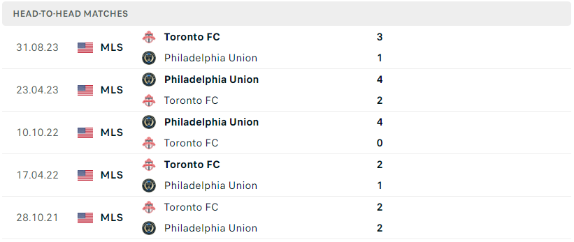 Thành tích đối đầu của Philadelphia Union vs Toronto FC