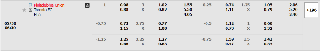 Bảng tỷ lệ kèo bóng đá trận đấu Philadelphia Union vs Toronto FC