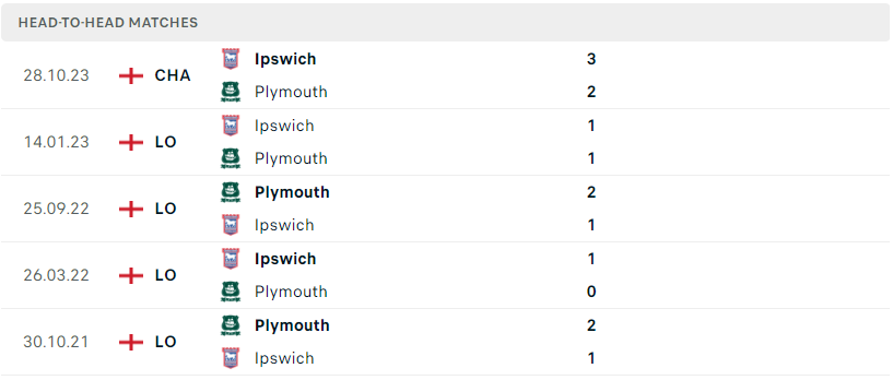 Thành tích đối đầu của Plymouth vs Ipswich