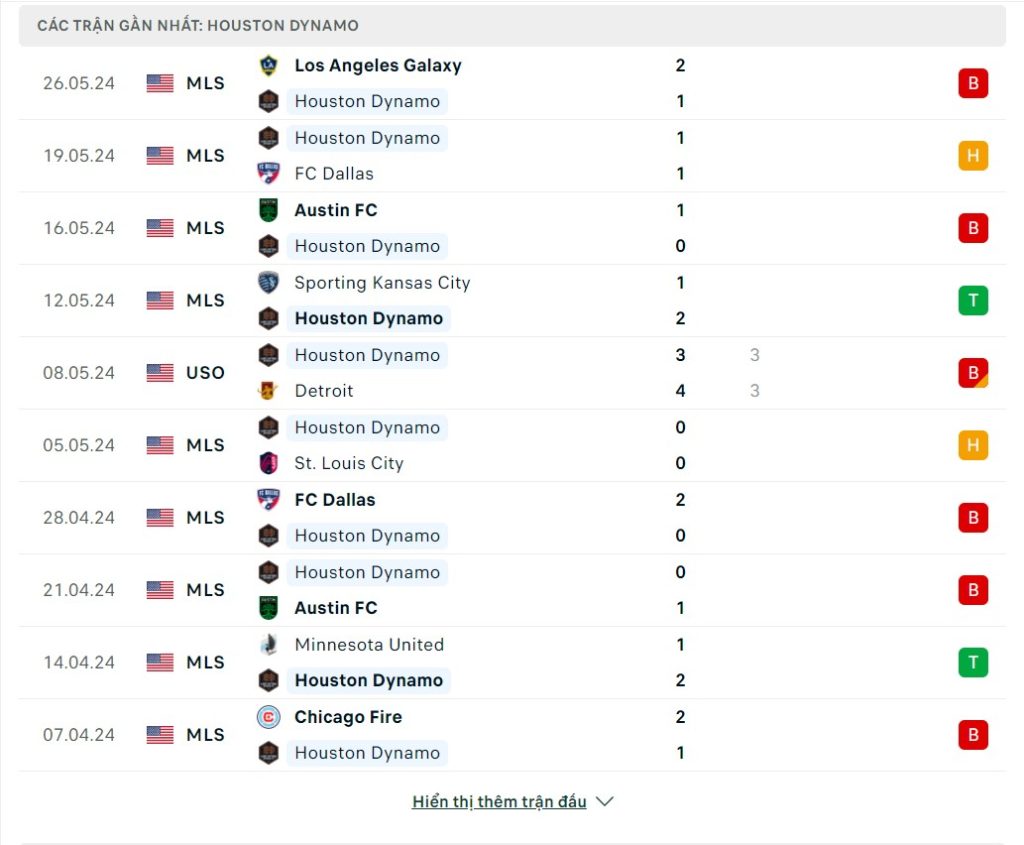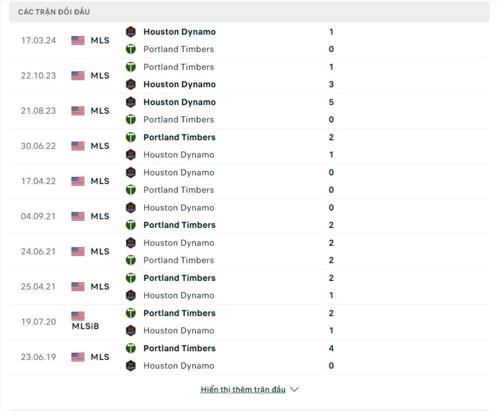 Lịch sử thi đấu của Portland Timbers vs Houston Dynamo