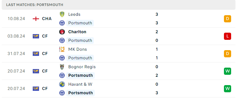 Phong độ của Portsmouth