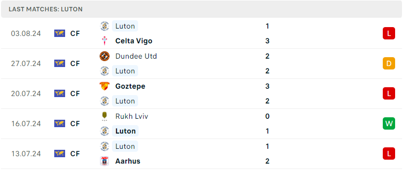 Phong độ của Luton Town