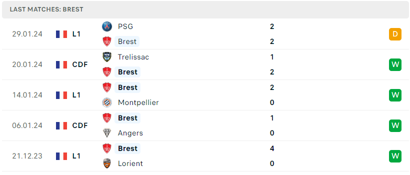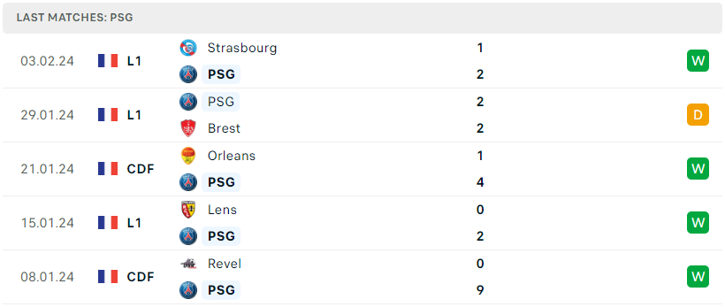 Phong độ đội bóng PSG vs Brest