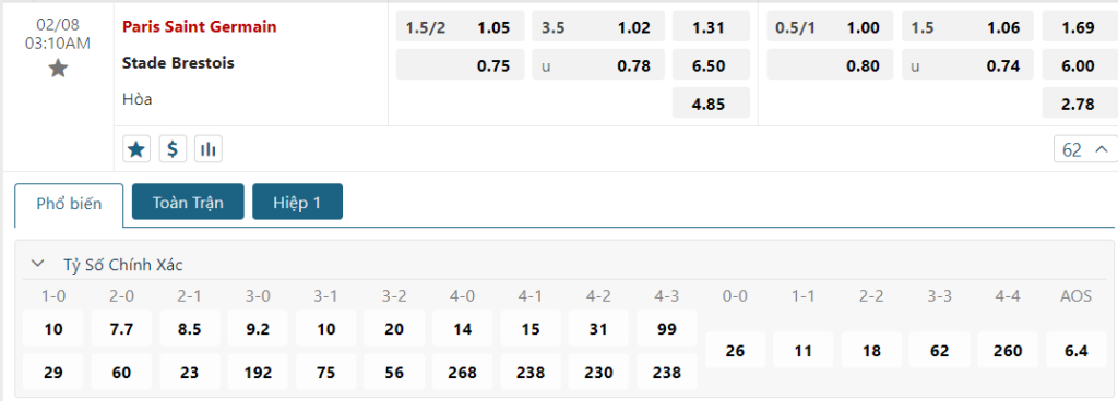 Soi kèo tỉ số PSG vs Brest