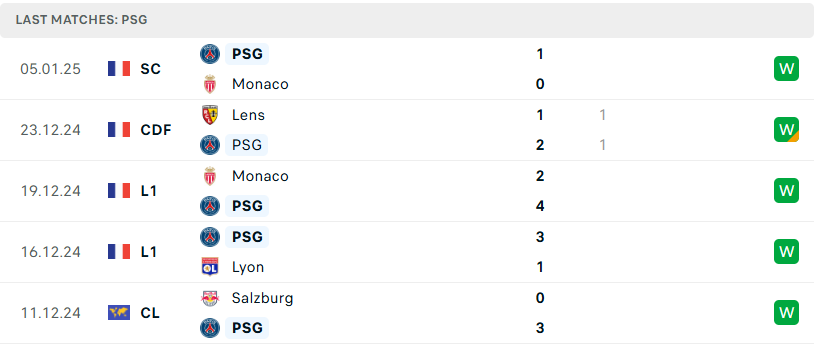 Phong độ đội bóng PSG vs Saint Etienne