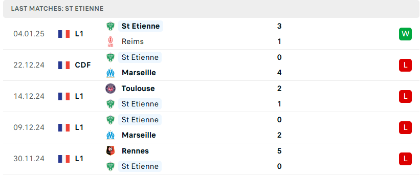 Phong độ của Saint Etienne
