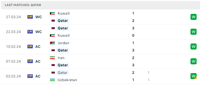 Phong độ của Qatar
