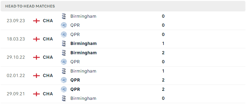 Thành tích đối đầu của QPR vs Birmingham