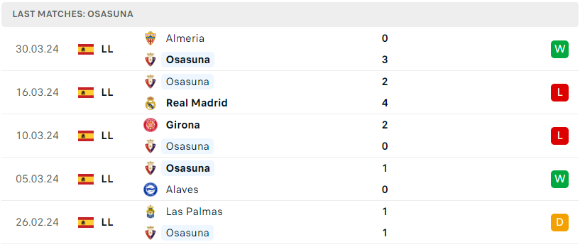 Phong độ của Osasuna