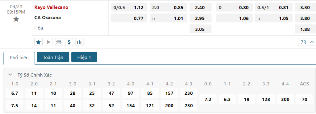 Kèo Châu Âu vẫn đang là sự nhỉnh hơn đôi phần dành cho đội chủ nhà, dù vậy nhưng sự chênh lệch giữa hai mức ăn là không quá lớn (2.40 so với 2.95). Theo như đã phân tích, Osasuna cũng không hề là một đối thủ dễ chịu và trong tình cảnh càng ngặt nghèo, Los Rojillos sẽ càng cho thấy bản lĩnh vượt khó của họ. Do đó, Vallecano sẽ khó tránh khỏi 1 thất bại như trận lượt đi.