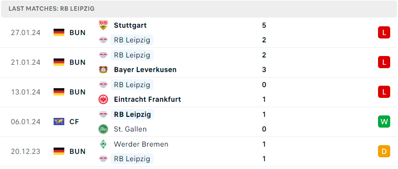 Phong độ của RB Leipzig